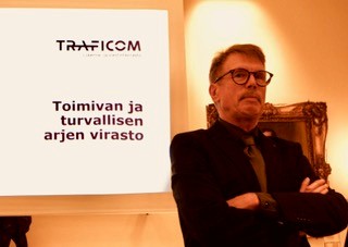 Illan esitelmä piti TrafiComin pääjohtaja Jarkko Saarimäki. Hän kävi läpi koko TrafiComin toimintaa koska meillä on ollut aika paljon pelkästään merenkulkuun liittyviä asioita. TrafiComin tehtäväkenttä on hyvin laaja.